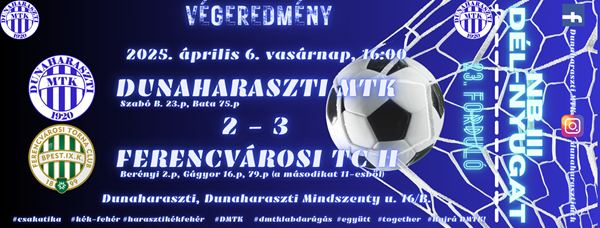 Az NB III Dél-Nyugati csoport huszonharmadik játéknapján az FTC II-t látta vendégül első számú felnőtt...